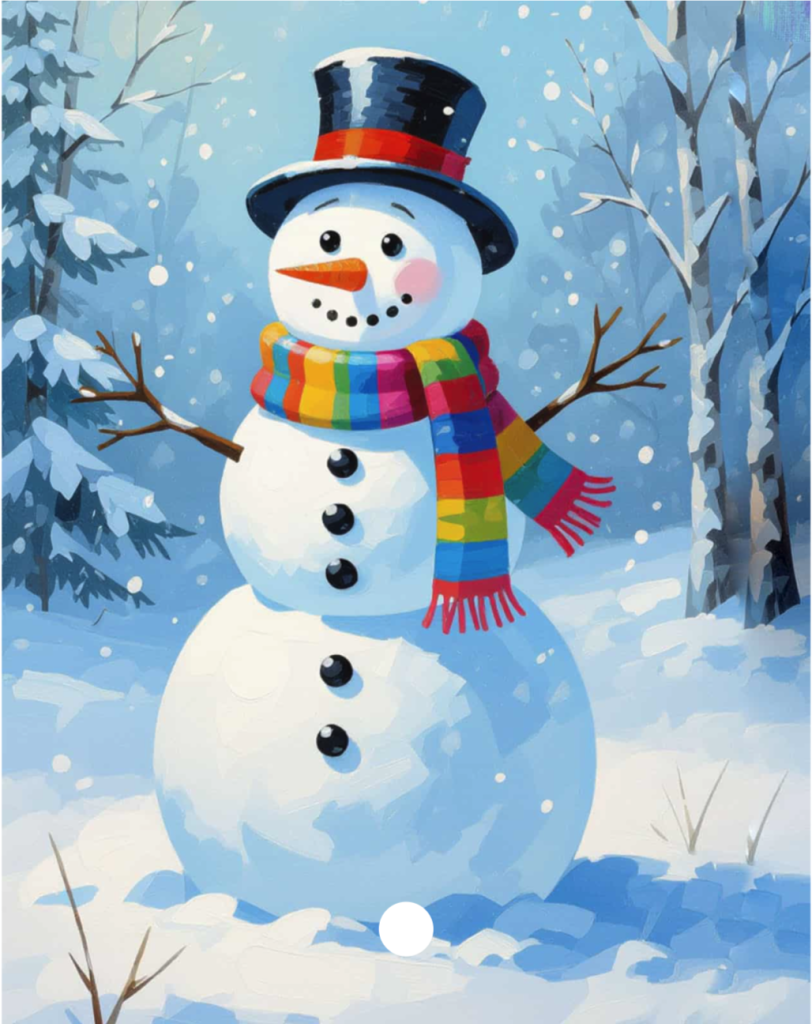 Step into a colorful winter scene as we paint a cheerful snowman wrapped in a bright rainbow scarf. This festive artwork is the class feature, with plenty of freedom to add your own colors, details, and winter magic.