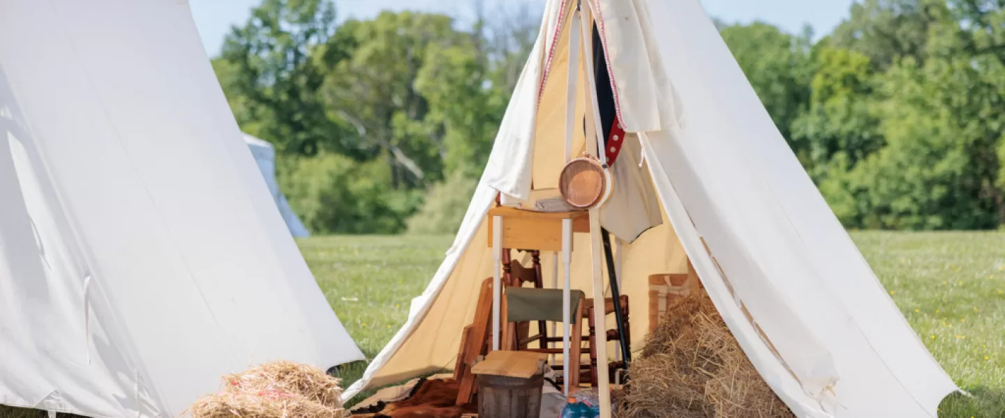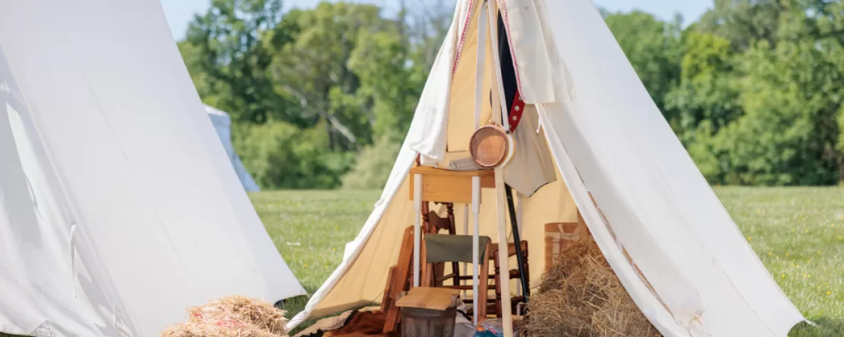 Immerse yourself in the daily life of soldiers, military officers, and the camp followers who traveled with the army as you explore a Revolutionary War encampment. At this hands-on attraction, you can touch the items inside the soldiers' tents and officer's tent, wash clothes in the laundry yard, and examine cooking utensils used by camp followers.