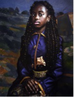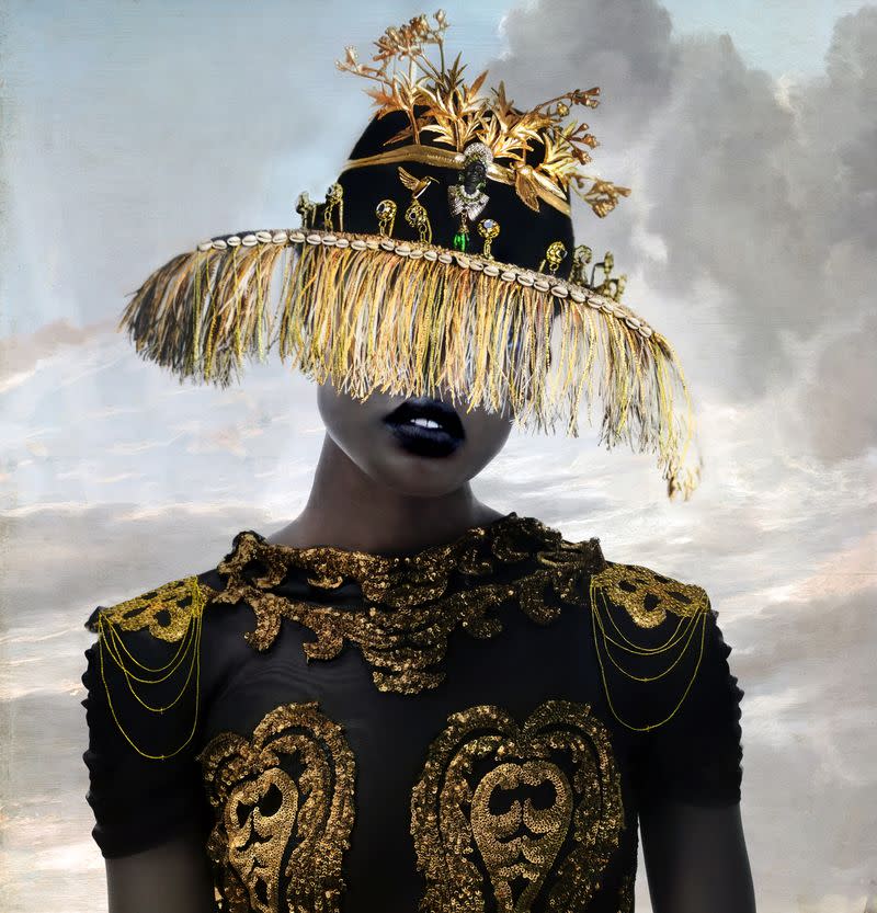 Chatmon’s series “The Restoration” was born out of a desire to remove antique racist dolls and figurines from circulation. In it, she features children holding these objects, which the artist has lovingly and carefully repainted and reclothed, symbolically reclaiming Black bodies and histories. Through her works, Chatmon urges viewers to celebrate the “significance, preciousness, sacred nature, and value” of her Black subjects.