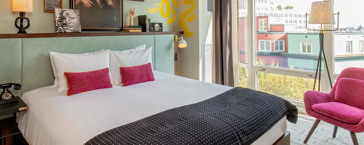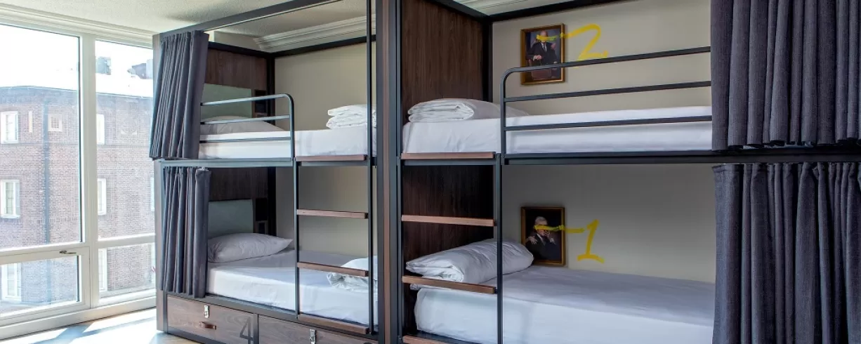 Generator Washington DC Hotel features 3 room types: 1 King Bed, 2 Twin Beds, or 4 Bunk Beds.