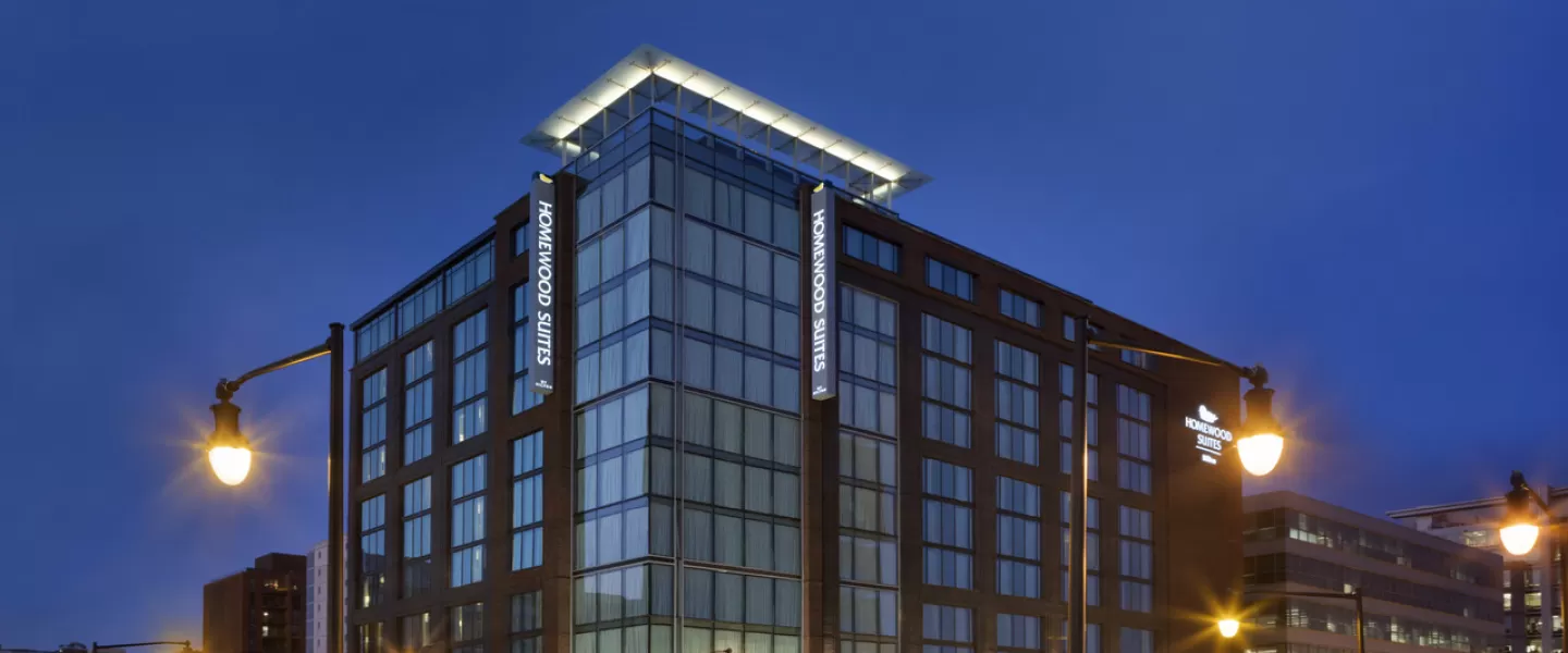 Located in the heart of DC’s fastest emerging neighborhood along the Anacostia River, Homewood Suites by Hilton Washington DC Capitol Navy Yard is the premier choice for your getaway. Our all-suite hotel is just steps away from the Washington Nationals' ballpark. With many new restaurants, stores, outdoor concerts, and a vibrant waterfront along the Anacostia River, guests will find it’s easy to ‘Be At Home’ during their stay. Featuring a modern façade and contemporary décor, our Hotel celebrates the energy of the Navy Yard neighborhood with floor-to-ceiling windows plus an indoor pool, an onsite fitness center, and event spaces. Guests will also find a plethora of water sports nearby like paddleboarding, kayaking, canoeing and catch and release fishing, all on the Anacostia River! Our modern rooftop terrace - available for rental - is equipped with gas grills, a pop-up bar, and panoramic views of Washington DC. The hotel is conveniently located across the street from the Navy Yard Metro Station (Green Line). In just minutes, our guests can reach all major historic attractions such as the U.S. Capitol, the Washington Monument and all of the Washington DC museums. Our guests can also enjoy complimentary daily hot full-American breakfast, and evening social - serving soup, salad bar, additional light fare, and complimentary Beer and Wine!