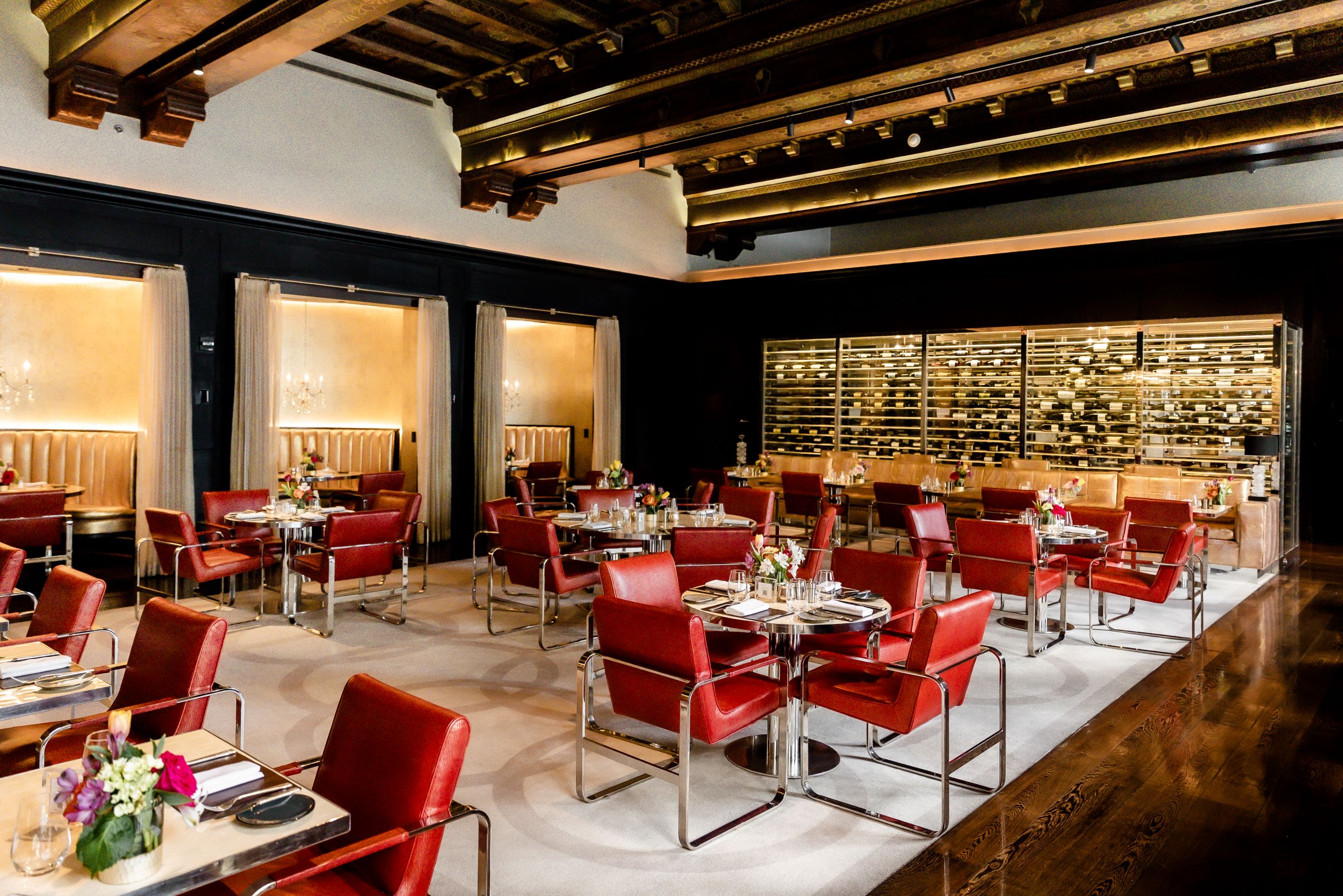Designed by renowned architect David Rockwell and the talented Rockwell Group, Alhambra highlights many of the historic building’s original features, including a landmarked hand-painted ceiling. It is set in a landscape of bold hues of black, silver, brown, cream, and gold, which intermingle with rich textures to create a lush, warm environment. The modern décor beautifully complements the restored St. Regis Washington, D.C., hotel, providing a one-of-a-kind dining experience in the heart of downtown Washington, D.C.