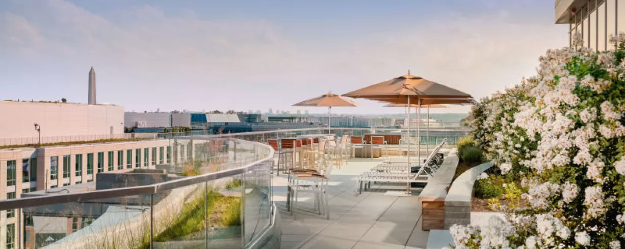 Situated in the vibrant Mount Vernon Triangle neighborhood of Washington, D.C., just moments from the Walter E. Washington Convention Center, our location offers stunning views of the U.S. Capitol. Host your daytime meetings in our fully equipped conference room, featuring a state-of-the-art AV conferencing system for seamless communication and presentations. Transition effortlessly into evening events in our upscale venue—featuring a sophisticated lounge and a modern indoor/outdoor rooftop that spans the entire Penthouse level. The property also offers immediate access to I-395 and Route 50, and is less than a five-minute walk from all major Metro lines.