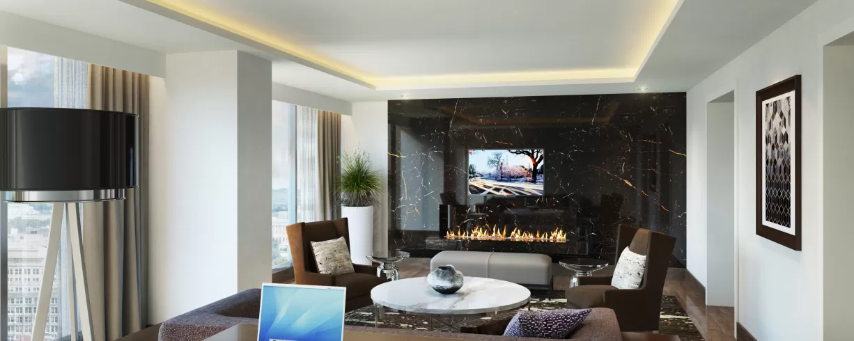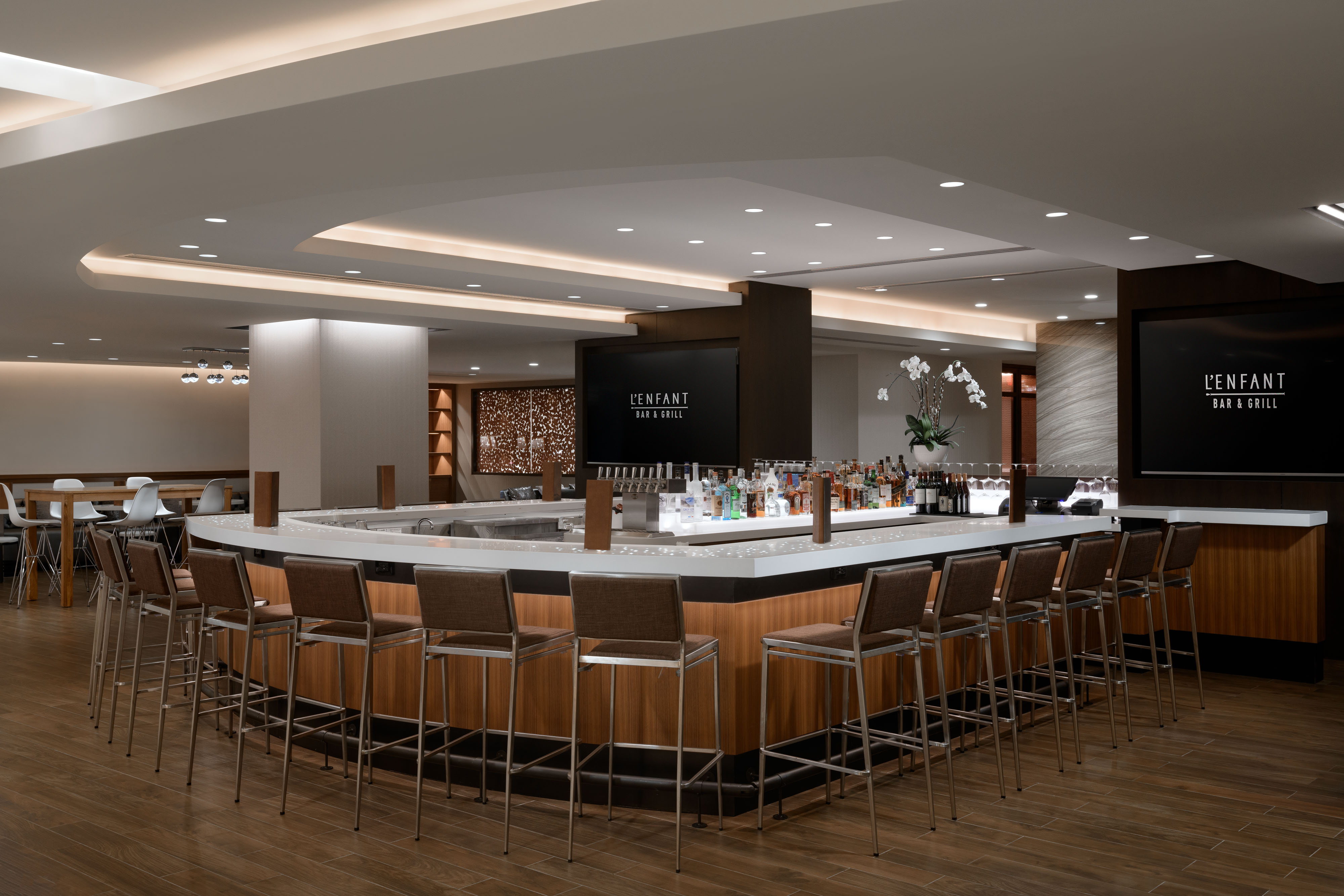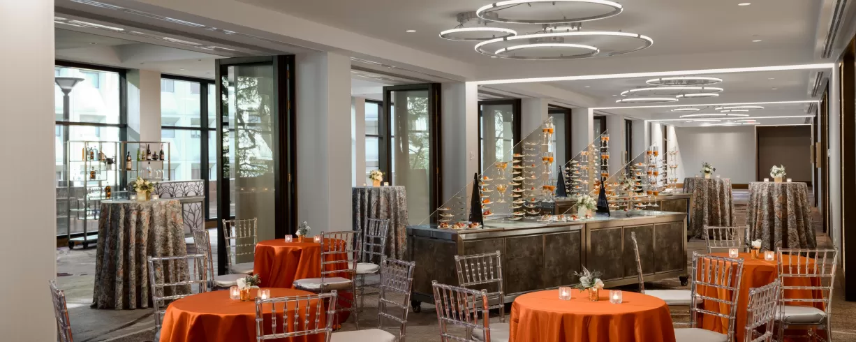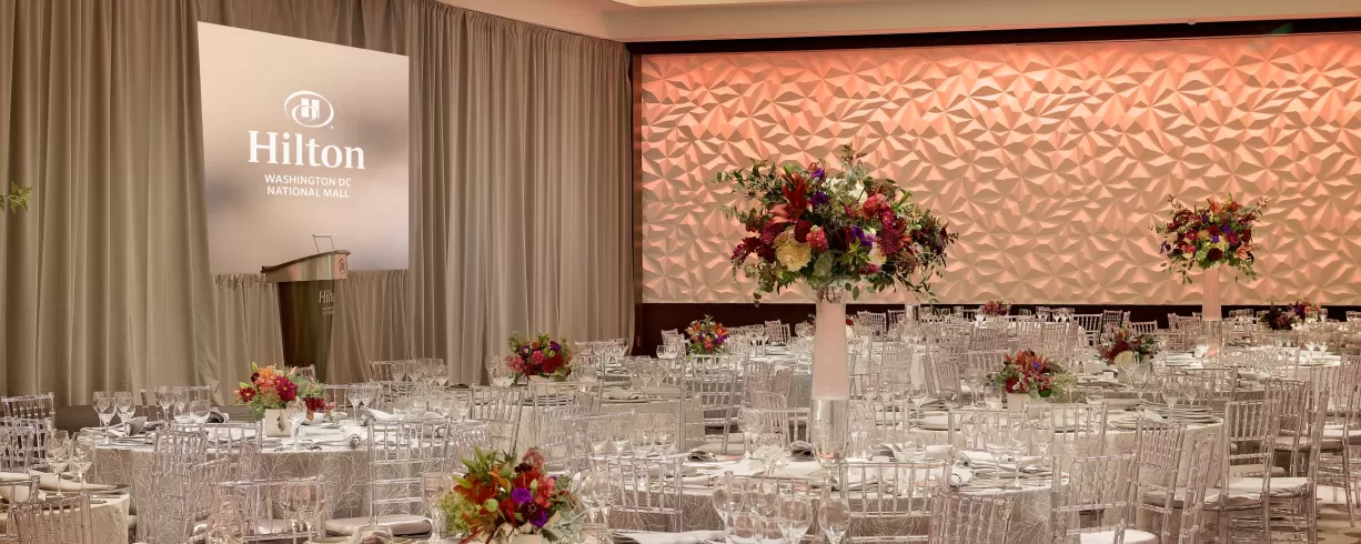 The welcoming and luxurious space is filled with delectable dining options, a sophisticated bar and lounge and 23,000+ sq. ft. of unique and innovative event venues. Their 23,000 sq. ft. of event space includes two contemporary ballrooms, the 5406 sq. ft. L'Enfant Ballroom and the 4,240 sq. ft. Gallery Ballroom.