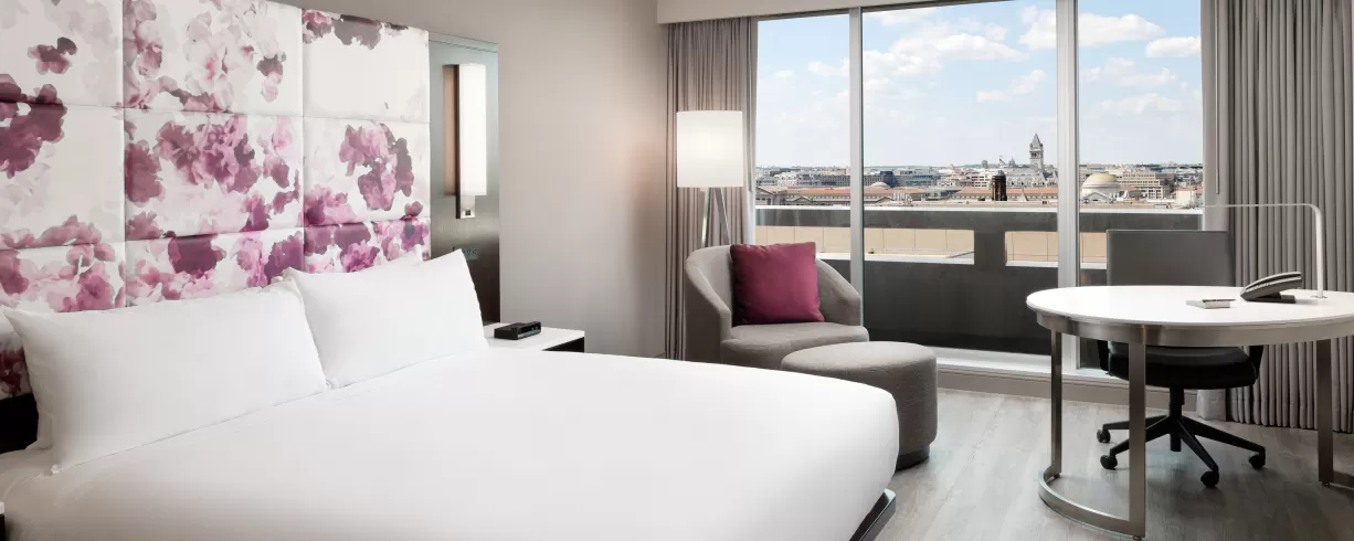 The Hilton Washington DC is located atop the L'Enfant Plaza Metro, offering guests instant access to all of Washington, DC's sights, landmarks, and airport. All rooms feature 1 or 2 King-sized beds ranging from 300 to 505 square feet.