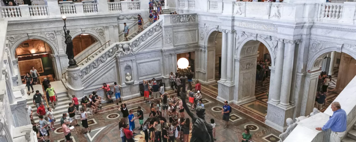 Visit the Library of Congress' Thomas Jefferson Building, known for its magnificent 19th-century architecture and changing exhibitions. Discover historical treasures and photographs documenting America at your national library. Open Tuesdays - Saturdays 10 a.m. - 5 p.m. Free and open late 5 - 8 p.m. on Thursdays for Live! at the Library. Free timed-entry passes required at https://loc.gov/visit. Closed Sundays and Mondays.