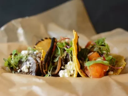 Perfect for casual office, social, or holiday gatherings. The menu changes based on the season. Cocktails, beer, and wine are available.